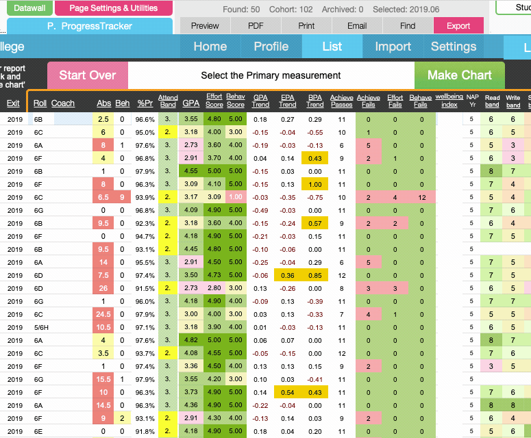 ADDED New attendance band option to the ProgressTracker list view. You can now build PT reports banded by Green, Yellow and Red attendance levels as set on the settings page